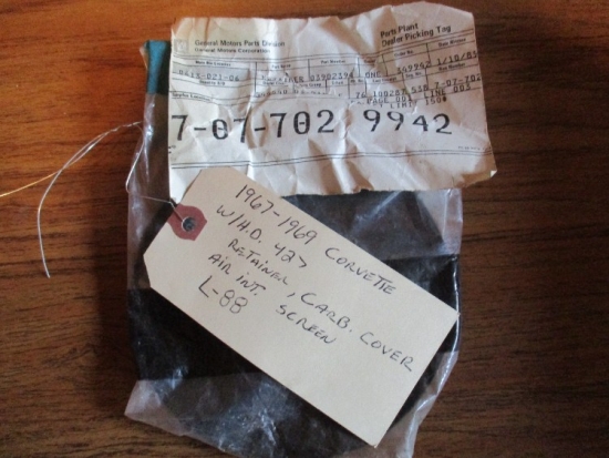 1965-1968 NOS J-56 Proportioning Valve only taken out of the box for picture's, 1967-1968 J-56 Proportioning Valve Bracket and 1967-1969 NOS W/H.D. 427 L-88 Retainer, Carb. cover. $2,000.00 for all. plus shipping. NO TEXT PLEASE. Call Tom at 1-248-826-6825